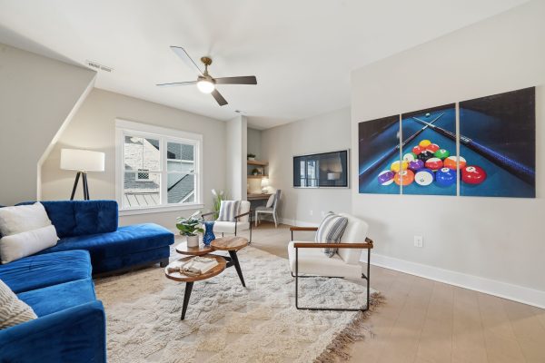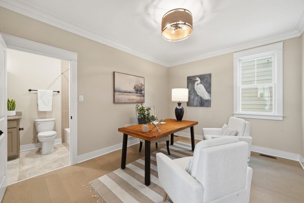 Richmond homeowners have always had a soft spot for New England charm, and 506-½ Westview features a tribute to the Shingle Style architecture of the Eastern coastline. Featuring a prominent gambrel roof and Chippendale railings, this 3,422 square foot, two-story home includes a two-car garage and classic exterior features such as a two-story porch, architecturally unique windows, and board and baton siding.