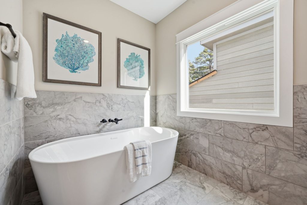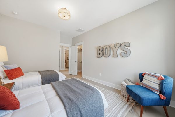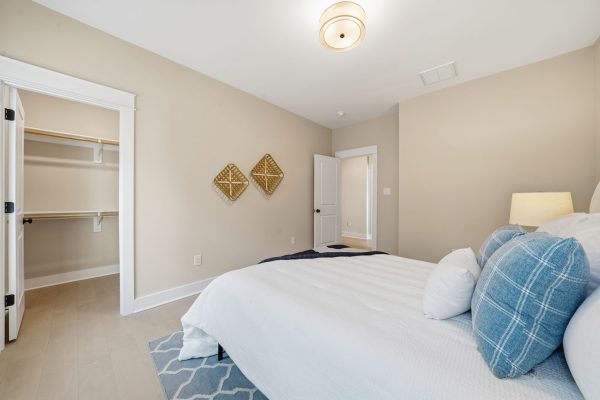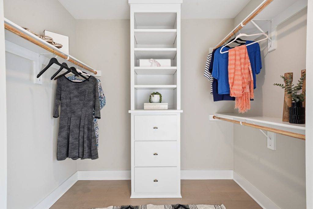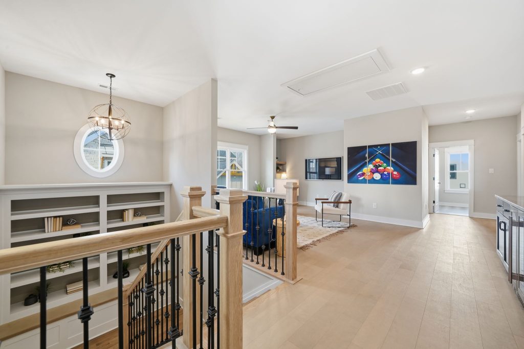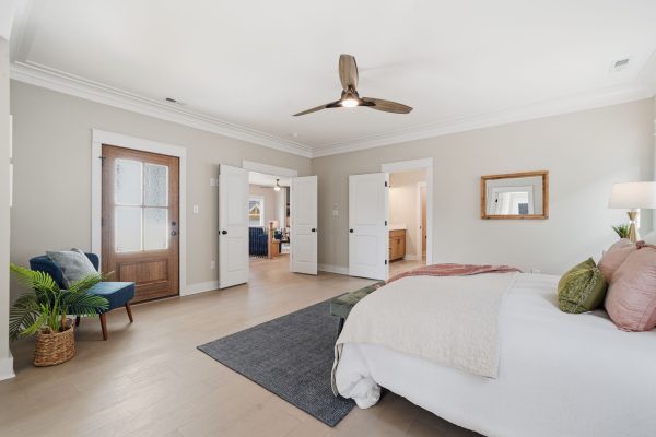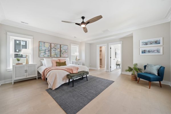 Upstairs offers two secondary bedrooms, both with walk-in closets, and share a nearby bathroom and laundry room. A large loft, sized for the whole family, provides a grand getaway space complete with custom built-ins and natural light. The Primary Bedroom contains access to a private covered balcony and the en-suite spa bathroom contains a freestanding tub, two-person shower, and dual vanities. The suite is not complete without a grand closet with natural light, window bench, and custom built-in storage. Adjacent to the closet is a flex space suitable for exercise, hobby room, storage, or closet expansion.